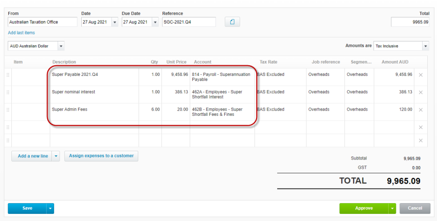 Once you have completed the Superannuation Charge Statement and lodged it to the ATO, you need to process the Superannuation Charge Statement transaction in Xero.