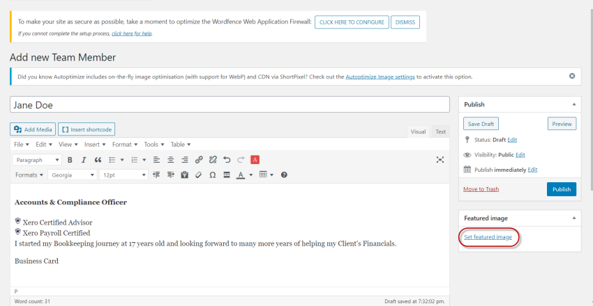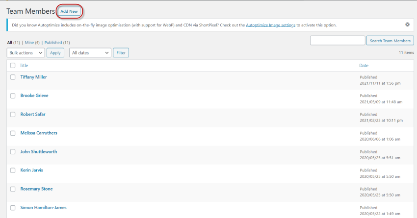 There are two steps in adding a Team Member to the ECA Website: first, create the Team Member Profile and then assign the Profile to the About Us page. Add the Team Member Picture to the Media Library