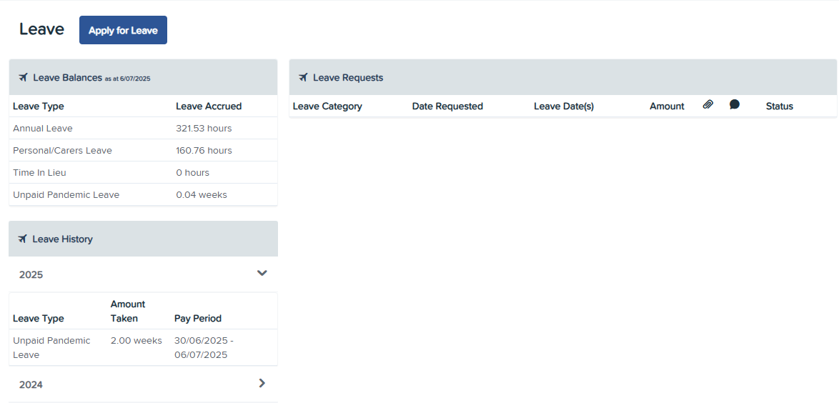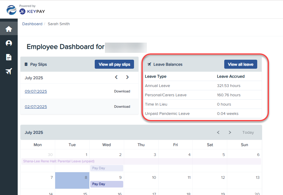 Employees can manage their leave directly from the KeyPay Self-service Employee Portal.