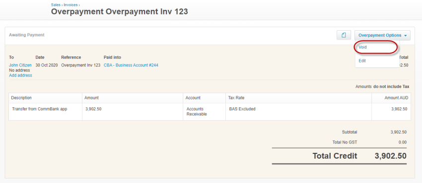 How to void an overpayment transaction [xero]